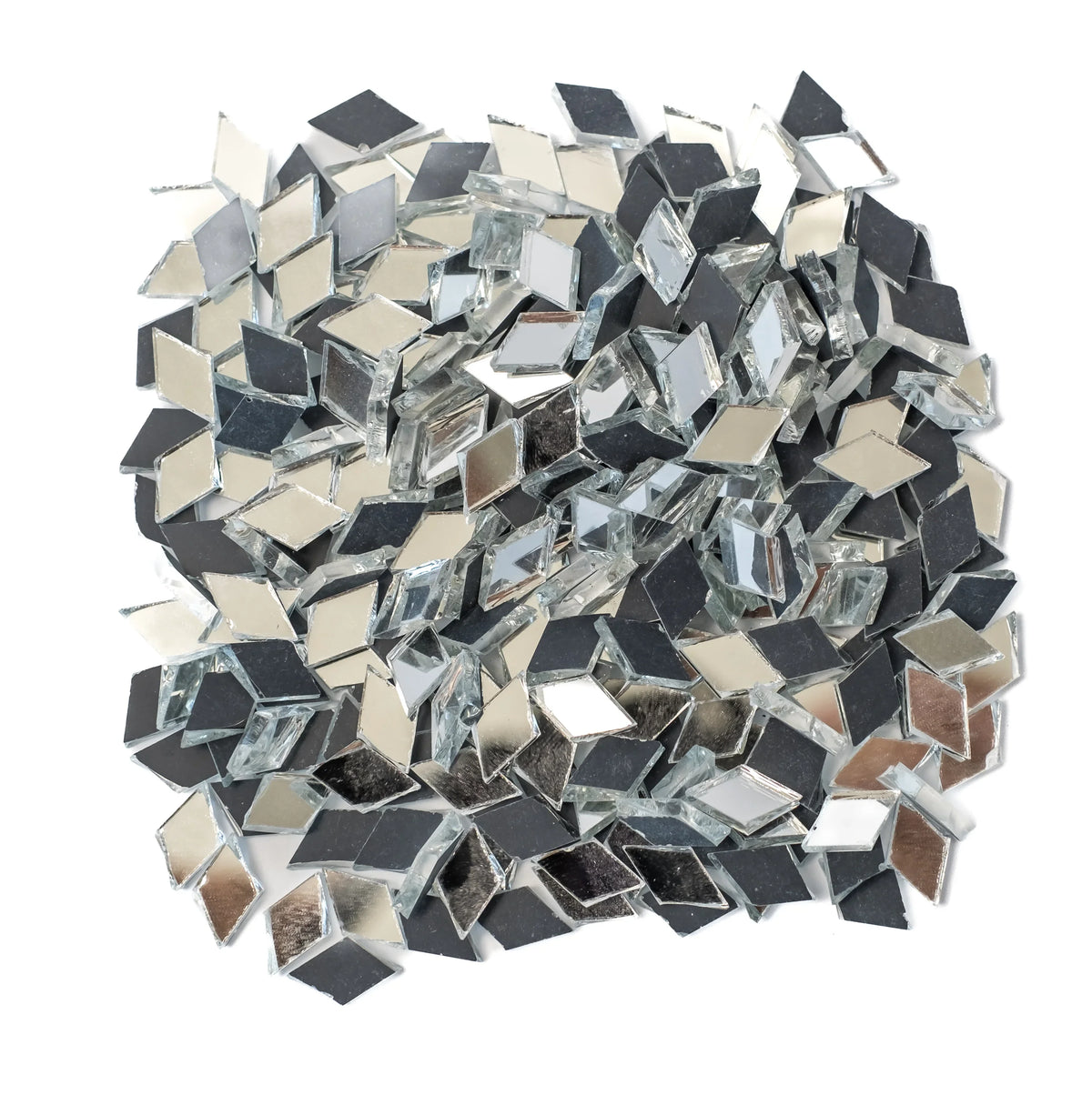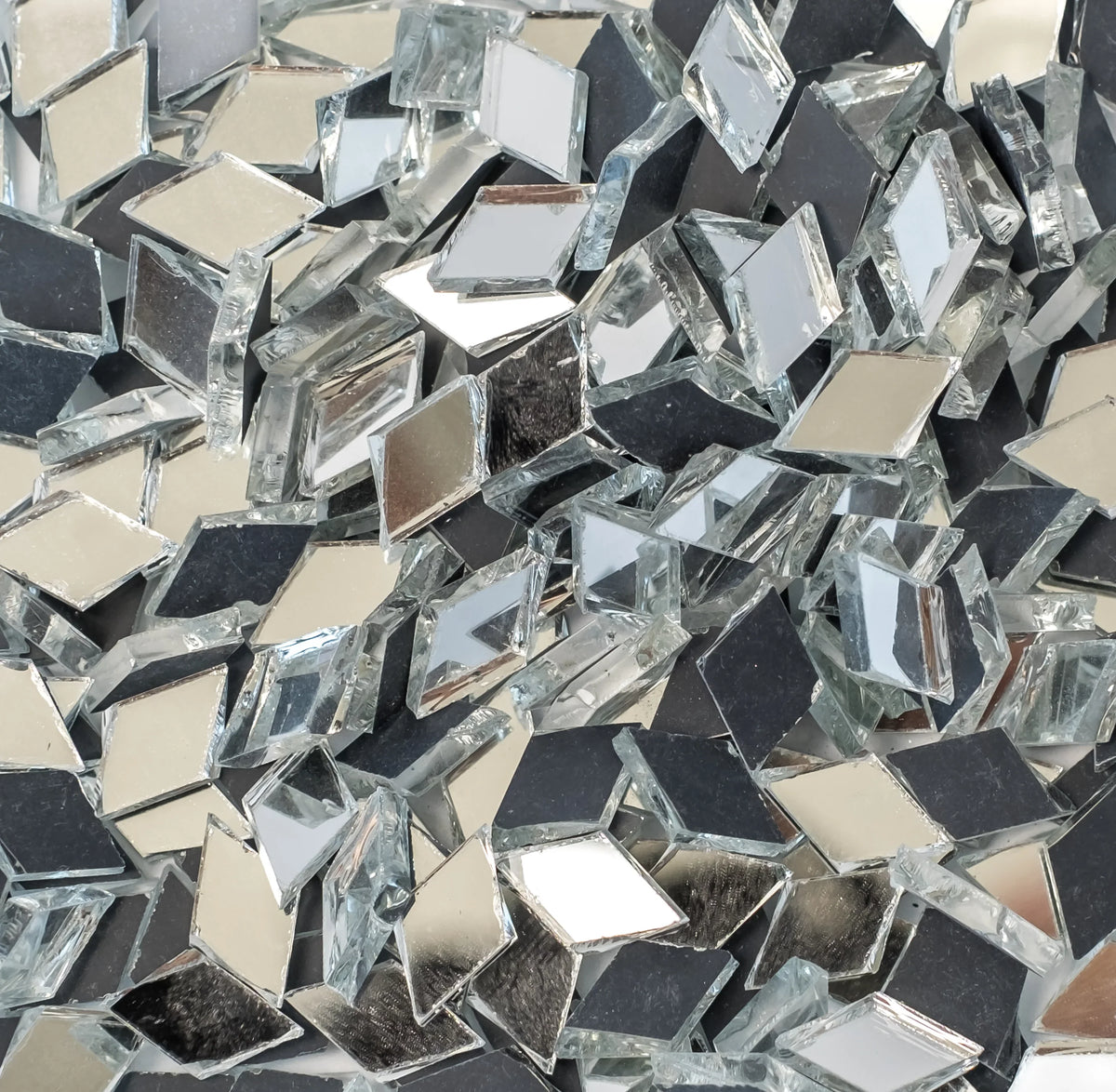 Add some glamour and a pop of color to your craft projects with our Hand Cut Mosaic Tiles. Made from high quality stained glass, these tiles come in a mirror and have a clear finish so they will blend in with your design and give you endless possibilities. These tiles are perfect for various crafting projects, offering versatility and aesthetic appeal.